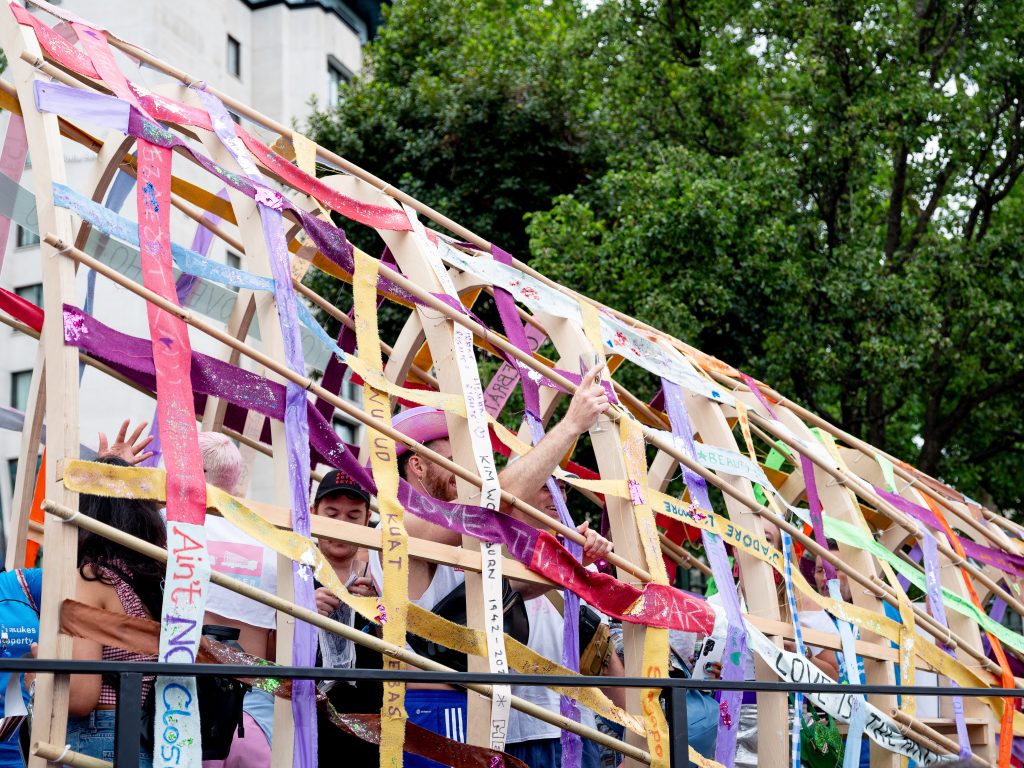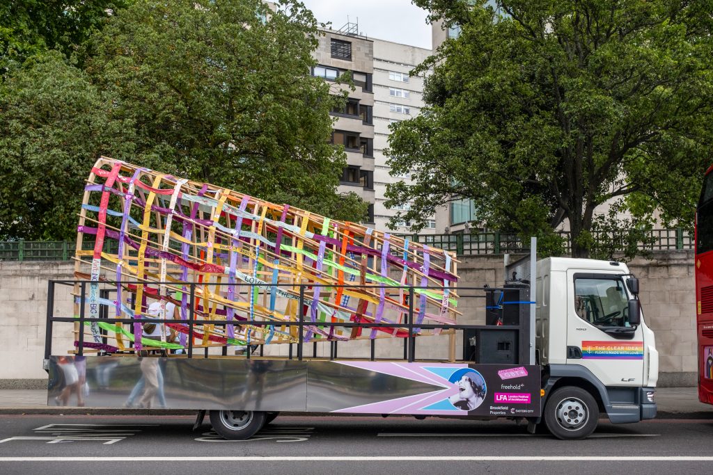 The original design competition asked designers to submit proposals that would respond to the LFA2025 theme of ‘Voices’ in a manner that would uplift the voices of the community and create a moving pride float suitable for Pride in London.